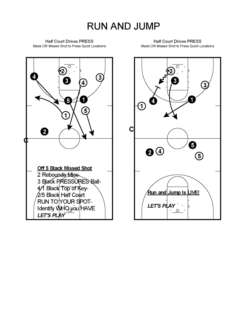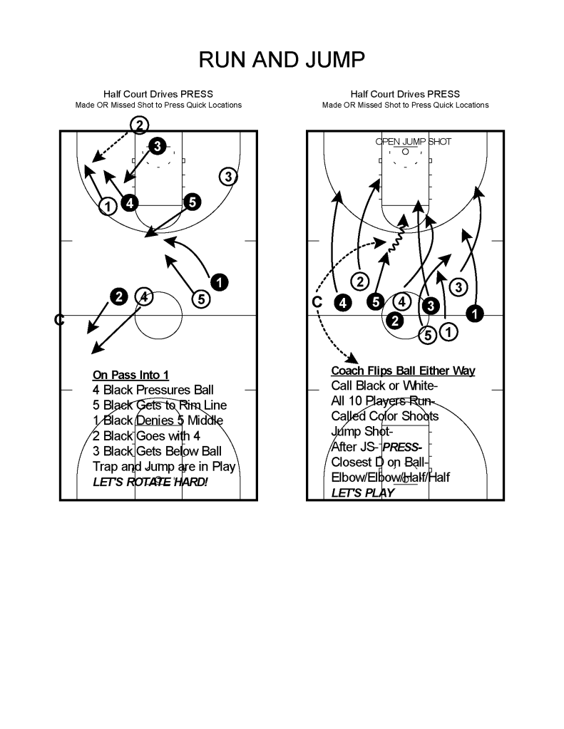 HALF COURT DRIVES are just the ticket for the Run and Jump Press! They are simple to run and will teach all the “game elements” that you need.